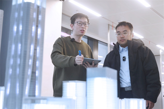 姜雪峰(右)调研张江模力社区。