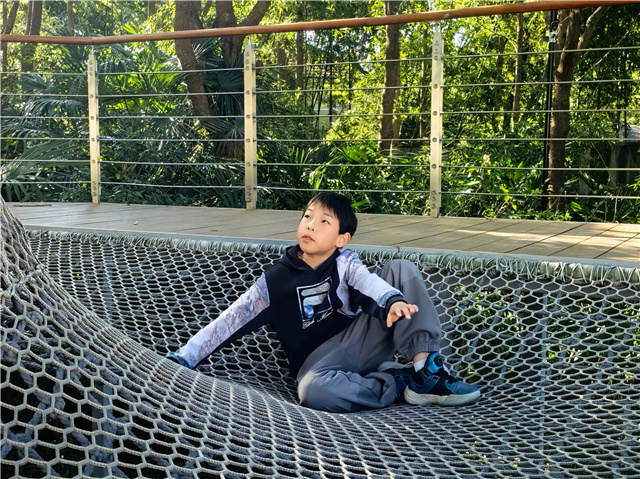近一两年,父子俩已走访了周边三十余处生境花园,每一处都让儿子流连忘返。虹旭小区生境花园中那张悬于树间的网,更是让孩子念念不忘——夏夜躺在网上,仰望星空,静听蝉鸣,成为他难忘的自然体验。