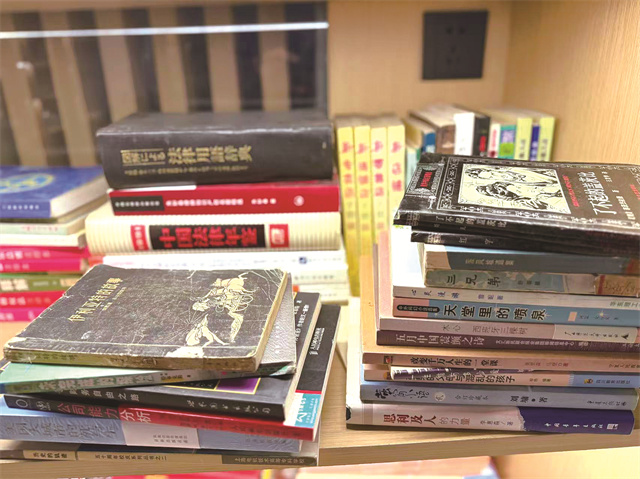 小朱还是“不怕多事”的性格。2025年下半年,他将仓库挪至宝山大华享寓宝荻路社区,并开设图书馆。这才有了那座将周励留下来的书山。