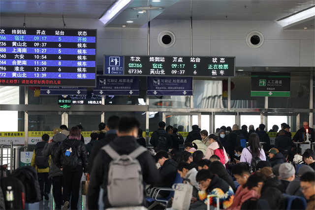 记者从铁路部门了解到,春运首日,铁路上海站预计发送旅客41.6万人次。其中,上海站11.1万人次、上海南站5.2万人次、上海虹桥站21.6万人次、上海松江站3.3万人次。为满足旅客出行需求,车站增开至安徽、江苏、云贵等方向列车18列。