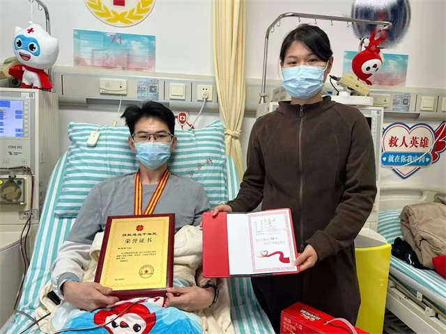吴雁飞和魏明霞拿着阿姨送的泥人。