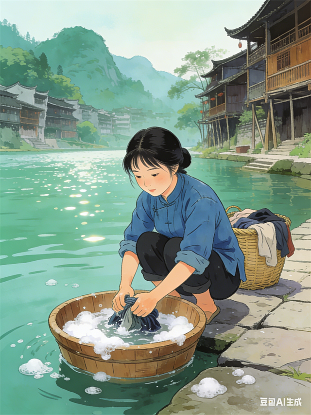 记者打开豆包输入“《边城》里的翠翠在河边洗衣服”,生成的视频中已经自行添加配乐,还有远景拉近景的切镜设计,整体流畅度超出预期。整个过程中,记者没有给出任何脚本,没有挑选任何分镜头图,甚至没有指定任何风格——机器替你做了所有决定。