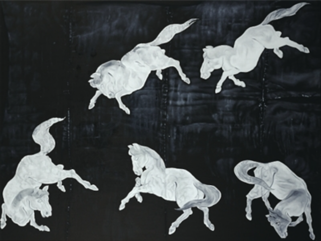 在邱旻彧看来,“中国马”和“外国马”的差异是显而易见的。“中国画中的马,尤其自文人画兴盛后,更倾向于‘借物喻心’——马是艺术家抒发情志、寄托人格的媒介。线条的书法性、墨色的虚实、留白的意境,这些语言本身已承载着哲学与美学思考。西方艺术传统中的马,常侧重于解剖的精准、动态的瞬间与叙事背景的烘托。”当然,到了当代艺术中,艺术家对马的解读更为多元,中外艺术家通过经典意象,与历史对话、与当下共鸣,赋予其批判性、社会性甚至抽象性的内涵。