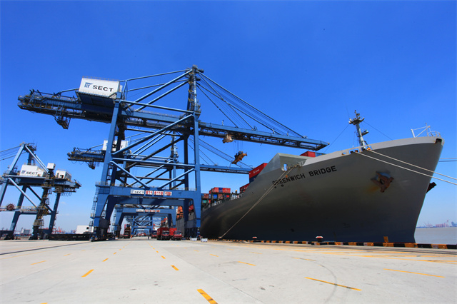 外四码头正在进行桥吊作业。受访者/图
