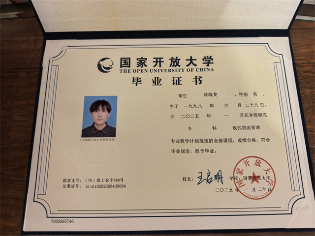 直观感受到了学历提升给工作带来的助力,今年蒋海龙又给自己树立了新的目标:继续考本科!“我们湖南老家有句话叫‘吃得苦,霸得蛮’,工作中要坚持,但坚持的过程中也要不断突破和提升,不断精进自己,才能拥有一个越来越好的自己。”