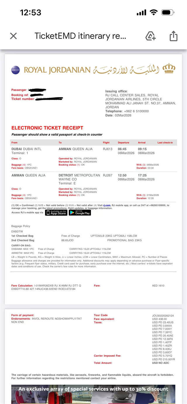 回到住所后李智也收到通知,自己28日晚上的航班被取消。“新机票的价格翻了一倍。”翻看航空公司平台,他发现原本500多美金的机票价格飙升至1000多美金。虽然自己不需要重新购票,但改签也面临着不确定性。他随后两次改签3月2日和3月3日的航班,先后被取消。“很焦虑,只能等。”对李智这样短暂落地迪拜的旅客来说,漫长不确定的等待让他的内心经历了一场煎熬。