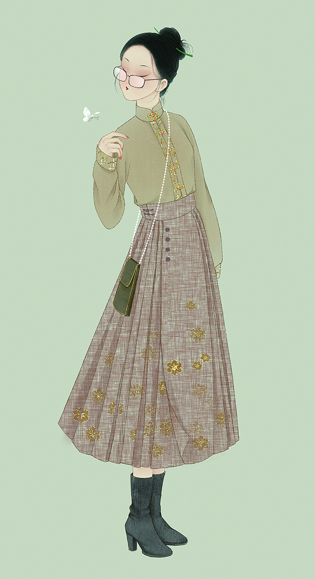 春日的江南园林,身着襦裙的少女执扇漫步;秋日的北方古城,马面裙的裙裾随步履轻扬;商圈的咖啡店,新中式旗袍搭配运动鞋的穿搭成了别样风景;校园的林荫道,盘扣卫衣、刺绣外套成为年轻人的日常……这几年,汉服与新中式的风吹遍大江南北,那些沉淀了千年的服饰元素,从博物馆走进日常,成为年轻人表达审美、彰显文化自信的载体。