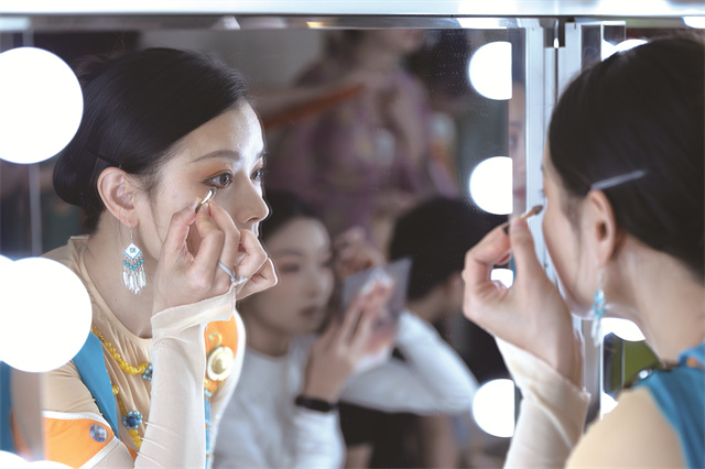 陈丽娜在演出前化妆。