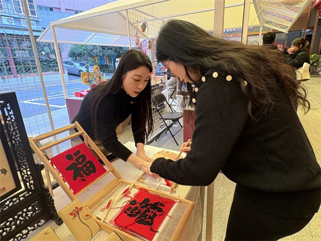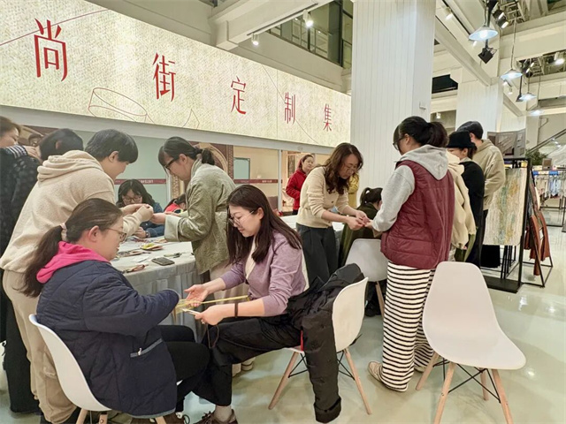 作为活动的一大亮点,非遗匠人市集集聚了十余家特色手工坊,中国蓝印花布馆、子冈工坊、如意檀香扇、仁和织绣等品牌悉数亮相,蓝印花布、缂丝、制檀、盘扣制作等多项国家级非物质文化遗产集中展示。市民们驻足摊位前,既能近距离观赏非遗技艺的制作过程,也能上手体验手工制作的乐趣,让非遗文化从展厅走向日常,成为可触摸、可使用、可消费的生活美学。