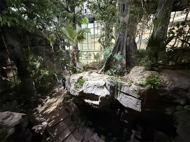 而即将于4月1日开放的“雨林秘境”展区,前身为“生物万象”展区,以山体结构保持不变,展示内容重塑、展示形式升级的方式进行改造。该展区展示面积超3000平方米 ,是科技馆十大常设展区中面积最大的展区。主要呈现科技视角下的自然,包括“雨林纵览”“魅力雨林”“雨林之家”“雨林故事”四大主题区,通过沉浸式环境、互动式场景和艺术性展品,让观众沉浸式体验热带雨林的生态环境,同时从科研工作者的视角引导观众了解科学发现的过程以及跨学科研究成果,启发观众从多学科的维度向自然学习,思考人和雨林关系。