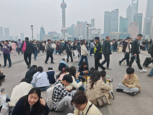 傍晚五点半,记者来到了外滩景区。在亲水平台上,景区的板凳上已挤满休息的游客。很多游客由于找不到空闲的位置,只能席地而坐。现场的保安告诉记者,从昨天开始,外滩的人流量就明显增多。“我们一家人是从苏州过来的,因为小孩子放春假了,所以我也请了半天假,陪小孩出来玩玩。”吴女士说,得知今年要放春假之后,孩子就和朋友约好了假期要来上海玩,外滩、东方明珠、迪士尼……这些景点都是他们此行的必经之地。“当然也不能一直玩,我们打算清明节的时候就回去写作业了,孩子作业还没写呢!”吴女士笑着说。