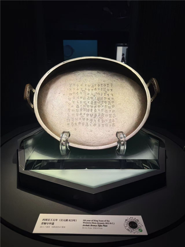 在溯源文脉根基的《华夏之序》篇章中,多件国宝级文物震撼登场。距今约3200年的商代甲骨刻辞三十四例,作为现今中国最早具有完备体系的文字载体,让观众直面中华文明步入信史时代的实物见证;曾拍出超2亿元天价的西周宣王五年青铜兮甲盘,其内底的133字铭文更是研究西周晚期历史的绝佳材料。此外,王鉴、王翚、王原祁等清初“四王”的经典山水画作也悉数亮相,尽显正统派书画的笔墨苍润。