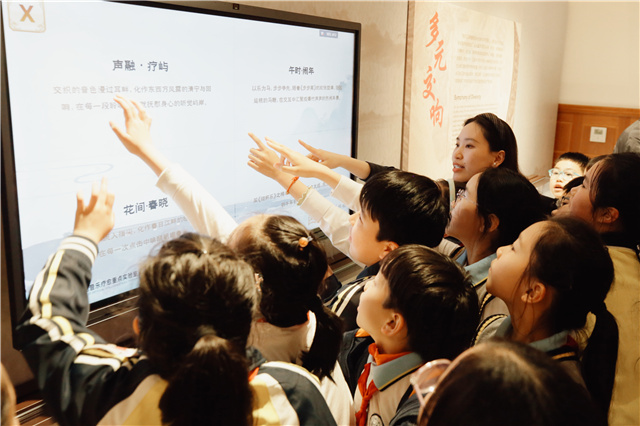 在沉浸式展演之后,观众们甚至参演的音乐家们,兴致勃勃地感受了博物馆内的“华夏・器韵・声境”中华民族乐器数字化交互系列装置2.0版与“华夏乐韵 元境东方”三维裸眼交互展示装置。这也是上音东方乐器博馆依托学校人工智能、音乐科技等学科优势,推动传统文化创造性转化、创新性发展的具体实践,既让观众沉浸式“触摸”民族乐音、生成专属旋律,也让民族乐器文化以更鲜活的形式走近大众、深入人心。
