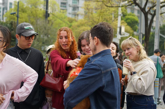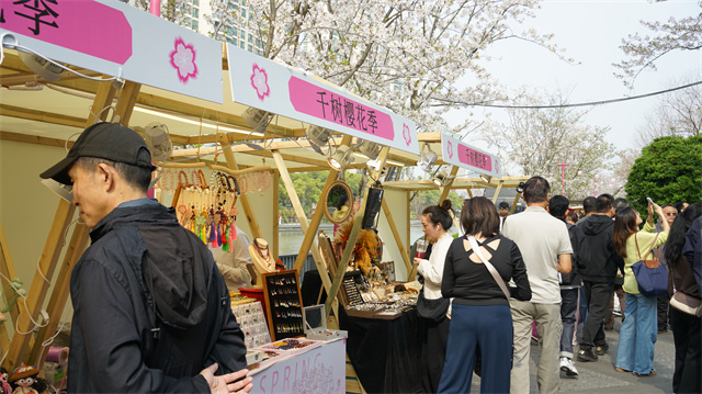 天安千树“千树樱花季”市集吸引了不少中外游客。