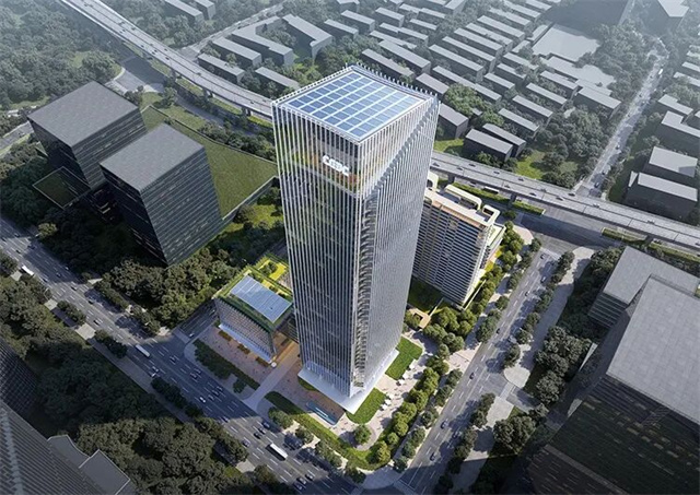 中国能建上海总部综合一体化项目东至枫林路,南至龙华中路,西至船厂路,北至中山南二路,致力于打造上海首座近零碳超高层建筑。项目通过“降需求、提效能、减排放、精管控、助运行”五大技术体系,应用高性能幕墙、地源热泵、建筑光伏一体化(BIPV)、智慧能碳管理系统及直流微网等技术,将建筑总体碳排放量降低47%,实现近零碳运行。