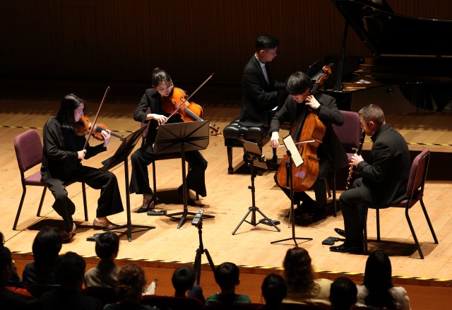 当晚音乐会还呈现了梁皓一的另一首室内乐作品——创作于2019-2020年的五重奏《嘉甸拿高速公路》。这部为钢琴、小提琴、中提琴、大提琴及单簧管而作的作品,灵感源自加拿大多伦多的一条主干道。作曲家留学时曾多次驾车往返于此,车窗外的风景与遭遇构成了作品的叙事线索:优美的湖畔路段、拥堵的车流、高耸的加拿大国家电视塔,乃至暴风雪击打挡风玻璃的声响,都被转化为充满活力的跳音、休止符与强烈的节奏律动。