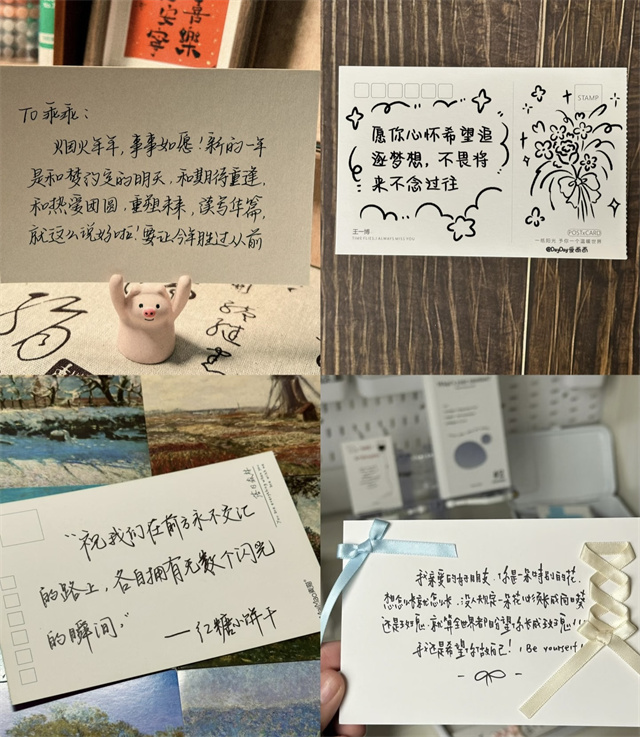 21岁的大三学生晓宏,“老式”程度更深。他没有抖音,几乎不看短视频,更喜欢看纸质书,用打印下来的文档,拿荧光笔和标签做笔记。时至今日,他依然会给朋友写生日贺卡,旅行时会寄一份手写明信片。他说:“在这个快速变化、一切求新的世界里,我能掌控自己的生活节奏,知道什么对自己真正重要。我感到自己与过去、与生活有具体的联结,这让我很安心。”