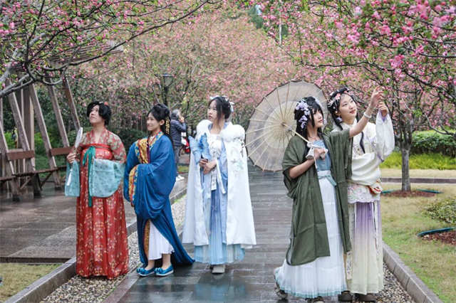 学院产品孵化中心“肆艺局”也带着陶瓷、文创、工艺美术等原创作品集体“出摊”。汉服社一场传统服饰展演,更是让古典美学与春日海棠撞了个满怀,围观市民纷纷举起手机。“产教融合不是让学生去企业打个杂就完事了,而是把产业需求直接前置到课堂上。”院长葛洪波一针见血,“从礼盒设计、视觉系统、艺术展陈到现场展演,学生全程参与真实项目,毕业前就‘实战’了一遍。这才是课堂与市场的无缝对接。”