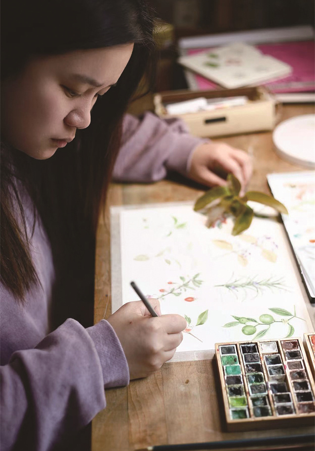 A:珠宝设计让我懂得质感、结构、细节和秩序,这些都被我潜移默化地运用在了植物画里。我希望我的植物画,既有科学的严谨,又有设计的精致,还有艺术的温度。此外,珠宝设计要面对市场、客户和潮流,这让我具备了产品思维。所以除了画植物画,我也会为图书画插画,设计文创产品,让植物画以更多的方式进入人们的日常生活,也能更好地养活自己。