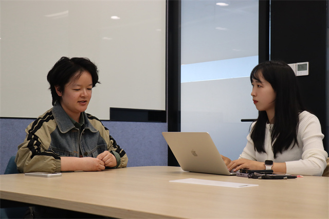 有其他公司的小伙伴老是端着电脑跑到她工位旁边坐着,跟她聊项目进展。她也会给出一些建议。得知楼里有一个做跨境咨询的姐姐,她直接下楼去找对方聊了半小时,了解到企业出海合规的重要性,她想如果以后要做跨境业务,这块一定得重视。