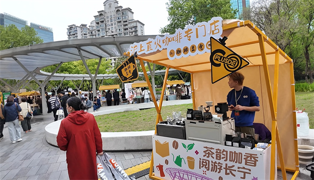 “平时我就爱泡咖啡馆、读读书,没想到今天能在一个地方同时享受两者。”市民小赵穿梭在摊位间,手里端着一杯刚买的创意特调,眼里满是惊喜,“现场氛围特别好,有音乐、有花香、有人聊天,感觉整个长宁都变成了一座流动的图书馆。”