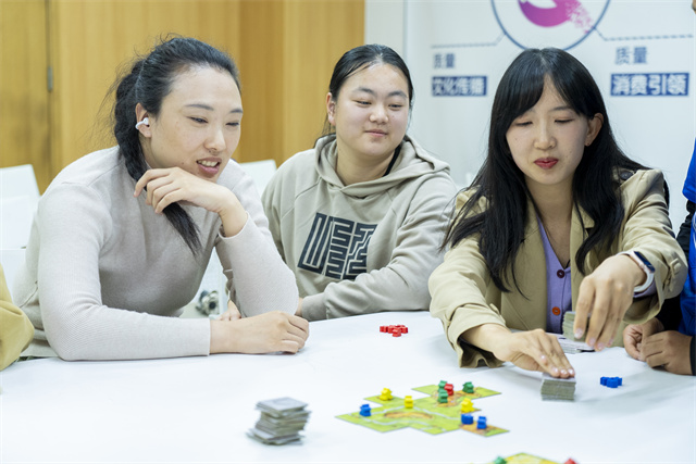 现场的书香游园,吸引了不少师生驻足。现场共设有套新知、书签夹夹乐、我在上财猜书名、以书易蔬、上财头条、书友共创舱六大趣味关卡,玩游戏集印章,在“智阅小站”免费领取集章卡,完成互动即可收集印章。集满4枚印章可解锁各种福利。还可以带上自己的旧书,“以书易‘蔬’”。据介绍,活动中收集的所有书籍,将定点捐赠给学校对口帮扶的中学。