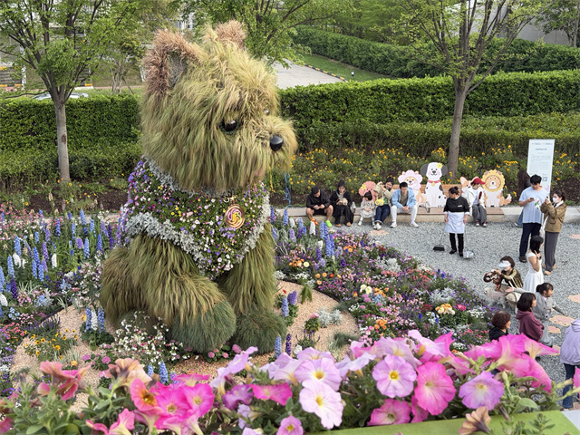 如果说国风和运动是年轻人赏花的“古典”与“活力”表达,那么今年花卉节上最火的,是那些“不走寻常路”的动物造型花艺装置。