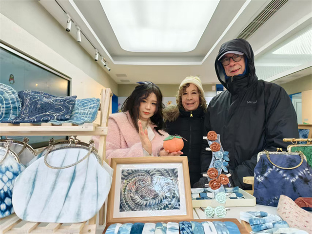 不久前,张艺芊做了一个小橘子挂件,扎染用的橙色,可以挂在包上。结果那天,店里走进一对外国夫妇。他们围着柜台,走来走去,对墙上的扎染工艺问个不停。张艺芊赶紧用翻译软件向他们介绍,包括工艺的来源,背后的文化故事,比如她做的小橘子,是“吉”和“橘”同音,听完后,外国夫妇竖起大拇指,并当即买下小橘子,挂在包上。“作为一个中国人,我们把故事说给更多外国人听,也展示了中华文化。”张艺芊感慨道。