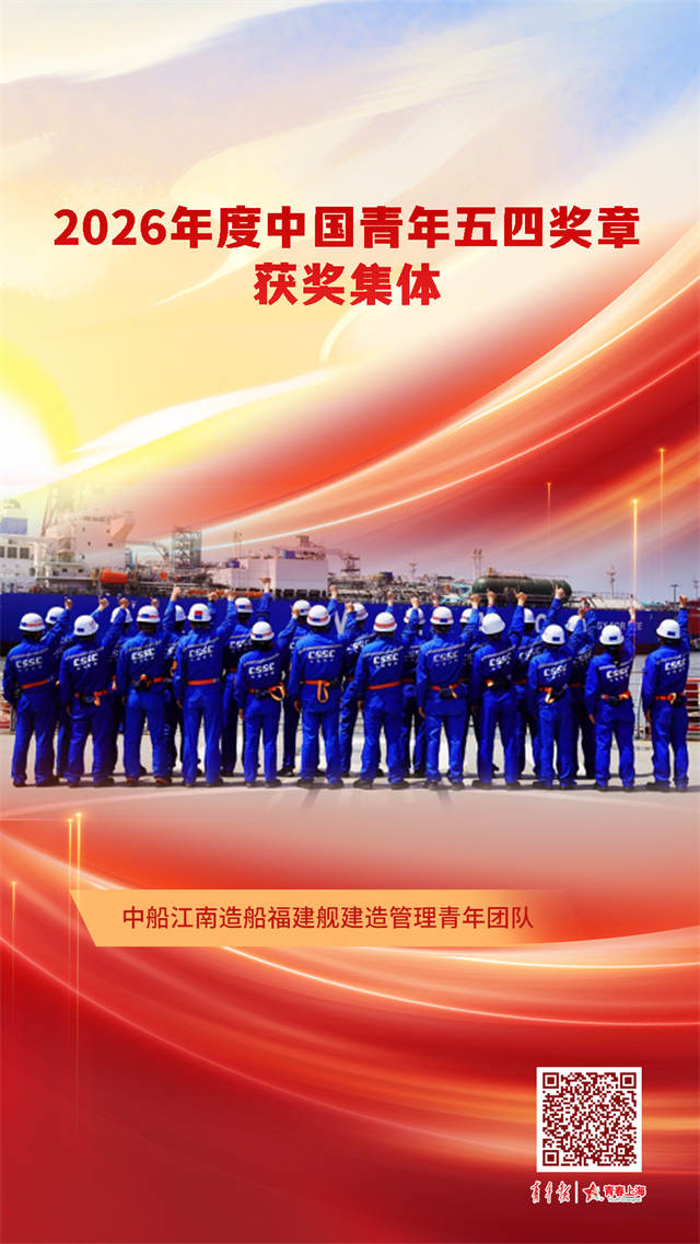 科技攻坚,他们成功研发具有自主知识产权的总段智能对接系统;顽强拼搏,他们在零下30摄氏度钻进狭长的轨道,裹着棉被建设实验平台。荣获2026年度中国青年五四奖章集体的中船江南造船福建舰建造管理青年团队,在航母工程领域用青春热血和奉献精神,打造了国际领先的行业标杆。