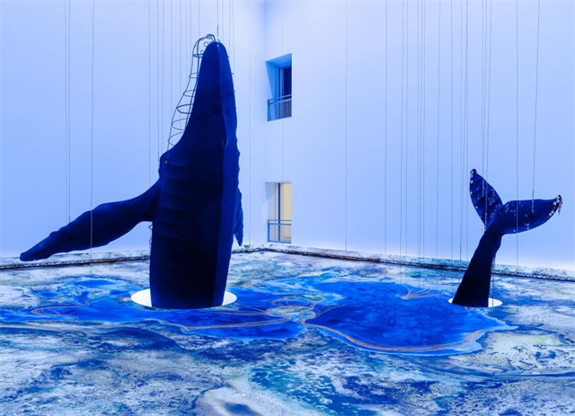 鲸鱼“跃入”美术馆,没有一滴水的浦美变成了深蓝大海