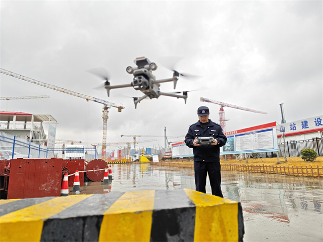新春走基层|无人机添“警翼”、科学勘图明重点,这位95后民警守护宝山高铁在建工地平安